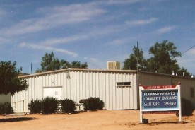 Flamingo Heights Community Center is also the Homestead Valley Disaster Center. We are fully equipped with medical supplies and equipment, bedding, cots, battery operated radio, flash lights, short wave, water and have a disaster team ready to help in any emergency. We were organized to keep Yucca Valley from taking our water. We bought and installed wooden street signs as well as naming them, graded the roads and then petitioned the U.S. Post Office to deliver mail to most of our homes. The signs were also for emergency services.